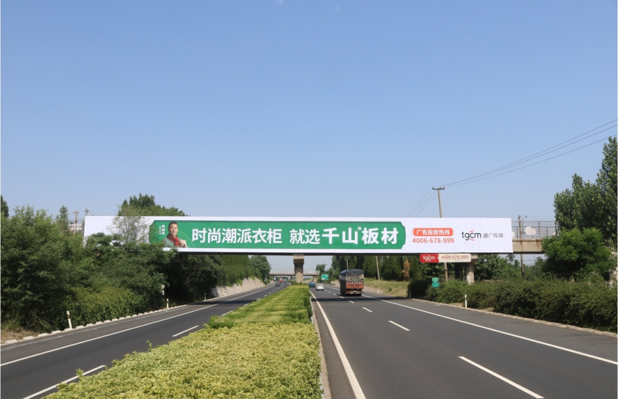 近日,千山在山東(dong)省(sheng)重(zhong)點高(gao)(gao)速(su)路段投放14座跨線橋和立柱媒體廣告(gao),再(zai)次(ci)橫跨山東(dong)省(sheng)內多條主(zhu)干(gan)線,如泰(tai)新(xin)高(gao)(gao)速(su)、京臺高(gao)(gao)速(su)、日蘭高(gao)(gao)速(su)、青(qing)銀高(gao)(gao)速(su)等(deng)(deng),覆蓋山東(dong)省(sheng)及其他省(sheng)市區域。高(gao)(gao)速(su)廣告(gao)形(xing)式依舊涵蓋跨線橋、單(dan)立柱等(deng)(deng),廣告(gao)畫(hua)面鮮艷,以綠色為主(zhu)色調,可視距離美觀(guan)、簡(jian)潔,進一步將“時尚潮派(pai)衣柜 就選千山板材”的(de)品牌主(zhu)張傳遞給更(geng)多的(de)消費