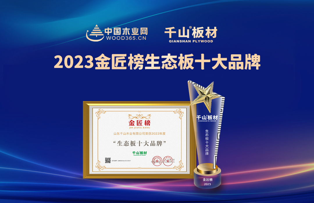 2023年7月1日,由中(zhong)國木業(ye)網舉辦的(de)(de)(de)(de)2023中(zhong)國板材產業(ye)峰會暨金匠(jiang)榜頒(ban)獎(jiang)典禮在(zai)杭州隆(long)重舉行(xing),行(xing)業(ye)專家(jia)、優秀獲獎(jiang)企業(ye)齊聚盛宴,共同見(jian)證了(le)生態板十(shi)大(da)品(pin)牌(pai)、行(xing)業(ye)影響力十(shi)大(da)品(pin)牌(pai)等各品(pin)類(lei)十(shi)大(da)品(pin)牌(pai)的(de)(de)(de)(de)榮耀加冕。在(zai)此次(ci)評選(xuan)中(zhong),千山板材實力登榜,憑借(jie)優異的(de)(de)(de)(de)產品(pin)品(pin)質、強大(da)的(de)(de)(de)(de)品(pin)牌(pai)實力、良好的(de)(de)(de)(de)服務口碑,再次(ci)斬獲金匠(jiang)榜2023年度“生