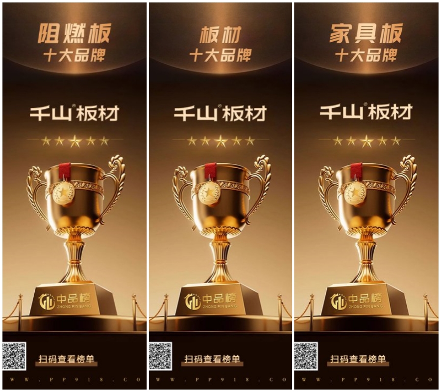 2024年4月,備受矚目的行業盛會——第八屆“中品榜”優品甄選活動圓滿落幕。在此次評選中,千山板材實力登榜,憑借卓越品質和品牌增長力,一舉拿下“板材十大品牌”、“家具板十大品牌”和“阻燃板十大品牌”三項大獎01 聚焦品牌 點亮高光時刻千山堅持“以推進時尚、健康、潮流家居板材、裝飾材料的普及應用為己任
