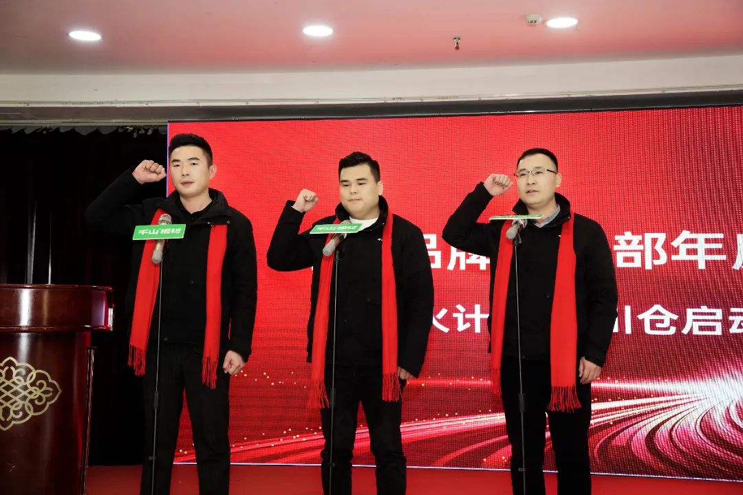 接著四川直營倉曹全震、滿彬、閆志玉進行宣誓。“以身作則,全力以赴,帶領團隊不斷突破自我,完成2024年公司既定目標!凱旋而歸!”戰旗在手、責任在肩、誓言聲聲,響徹會議大廳,這也意味著千山家具板又誕生了一支生力軍!