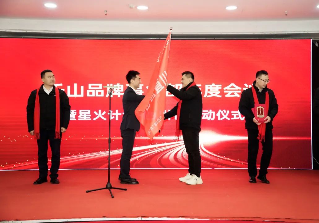 旗幟交接儀式,曹全震接過王總遞上的“四川直營倉”戰旗,現場揮舞,豪情在胸。曹總感慨得講到,自山東直營倉開啟,千山家具板通過“1縣1代、1張起發、6大支持”一路高歌奮進,取得了豐碩成果,為四川直營倉的起航打好“前戰”。