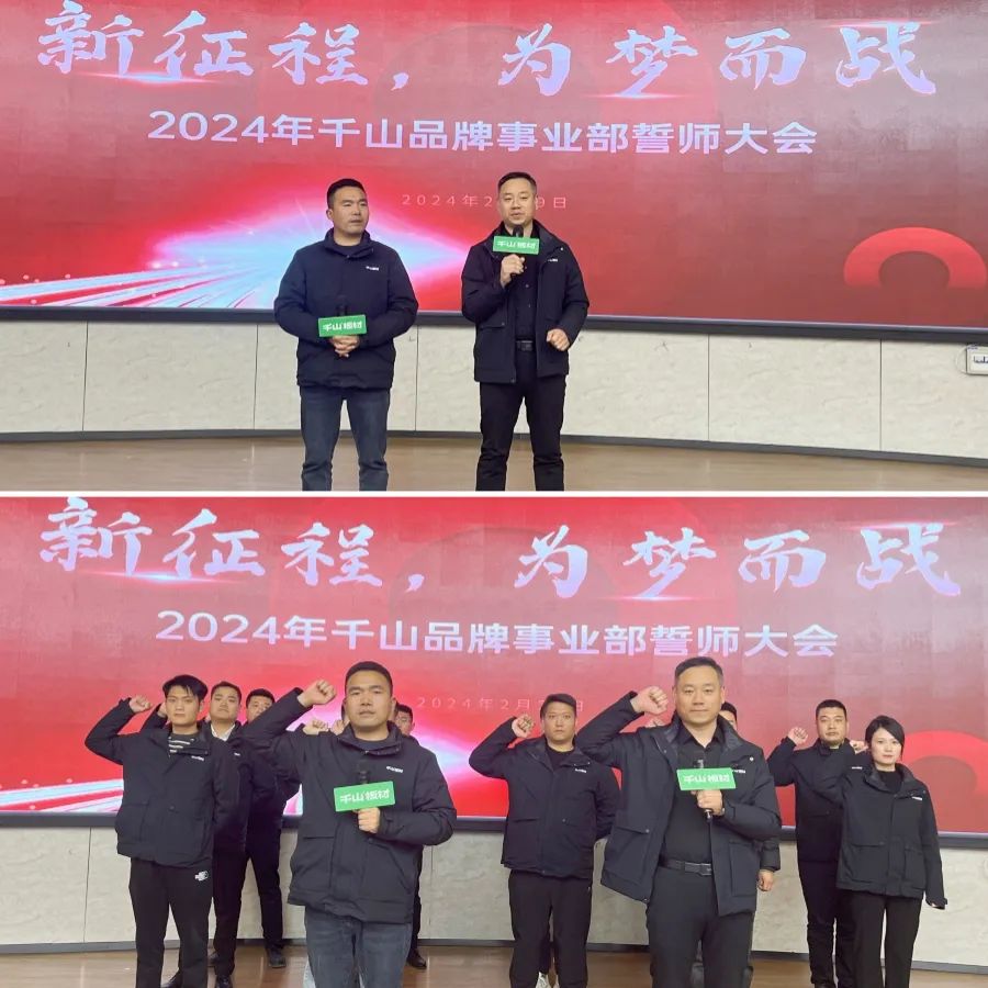 2月29日,“新征程 為夢而戰”,2024千山品牌事業部誓師大會高燃啟動。集團各事業部總經理與全體營銷精英集結一堂,以飽滿的精神,點燃營銷團隊的熱血與激情,吹響全面決勝的集結號!