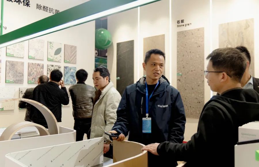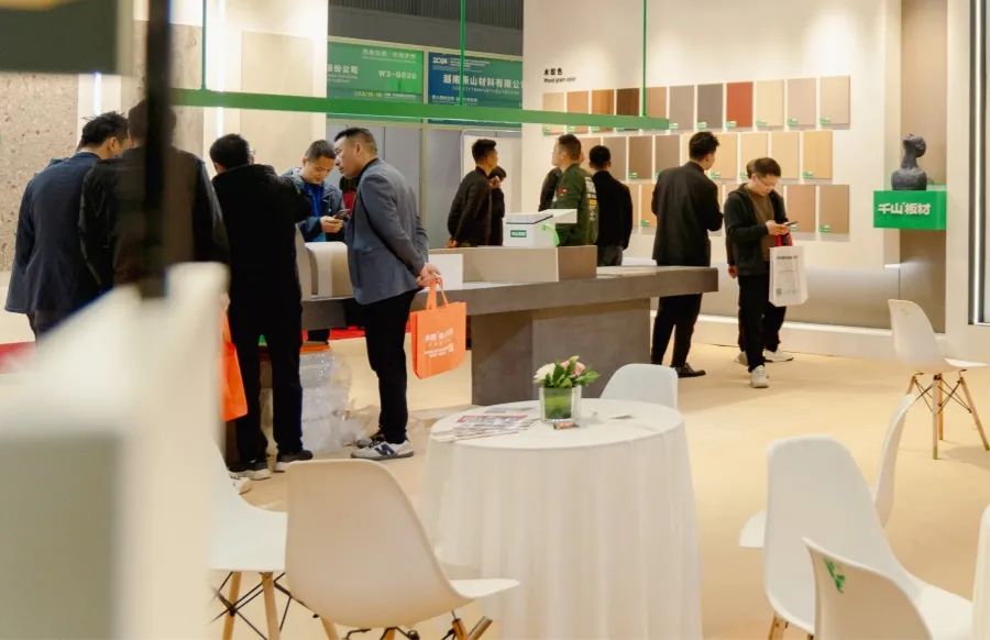 3月16-18日,第16屆中部(長沙)建博會于長沙國際會展中心盛大開幕,涵蓋了全屋定制、智能家居、綠色建材等十一大展區。千山板材驚艷亮相W3館T10展位,以2.0品牌視覺構筑展館空間,全方位展示了2024產品體系及潮流花色。