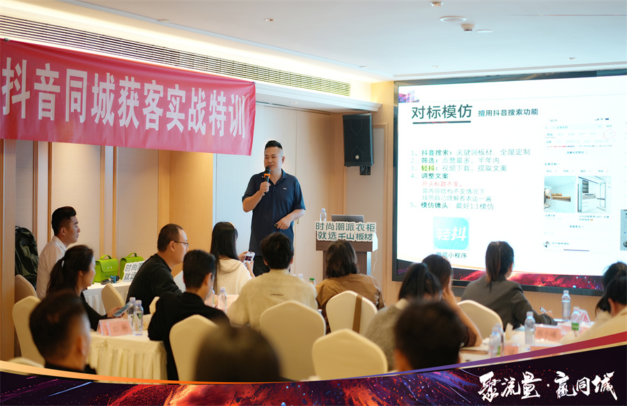 2024年千山著重發力線上渠道,通過抖音同城獲客引導經銷商伙伴們突破自我,入局賽道,通過持續的線上轉化促進業績增長。千山集團品牌運營中心于昆總監為大家解讀了“板材生意”增長的“新渠道、新營銷、新增量”,通過多樣化的營銷策略,打造線上社媒傳播陣地,最終賦能終端。