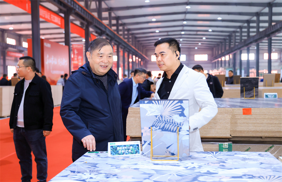 中國木業網董事長李鈺嬌女士上臺致辭。李董表示,作為千山的老朋友,中國木業網見證了千山板材的高速發展。展望未來,中國木業網將繼續與千山保持緊密的合作關系,共同探索行業機遇,攜手開創更加美好的未來。