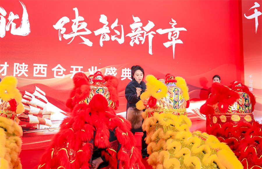 千山集團馬彥慶董事長、劉玉蓮副董事長共同為祥獅點睛,期待歡騰的祥獅為陜西倉摘得好彩頭,共同祝愿陜西倉的蓬勃發展。