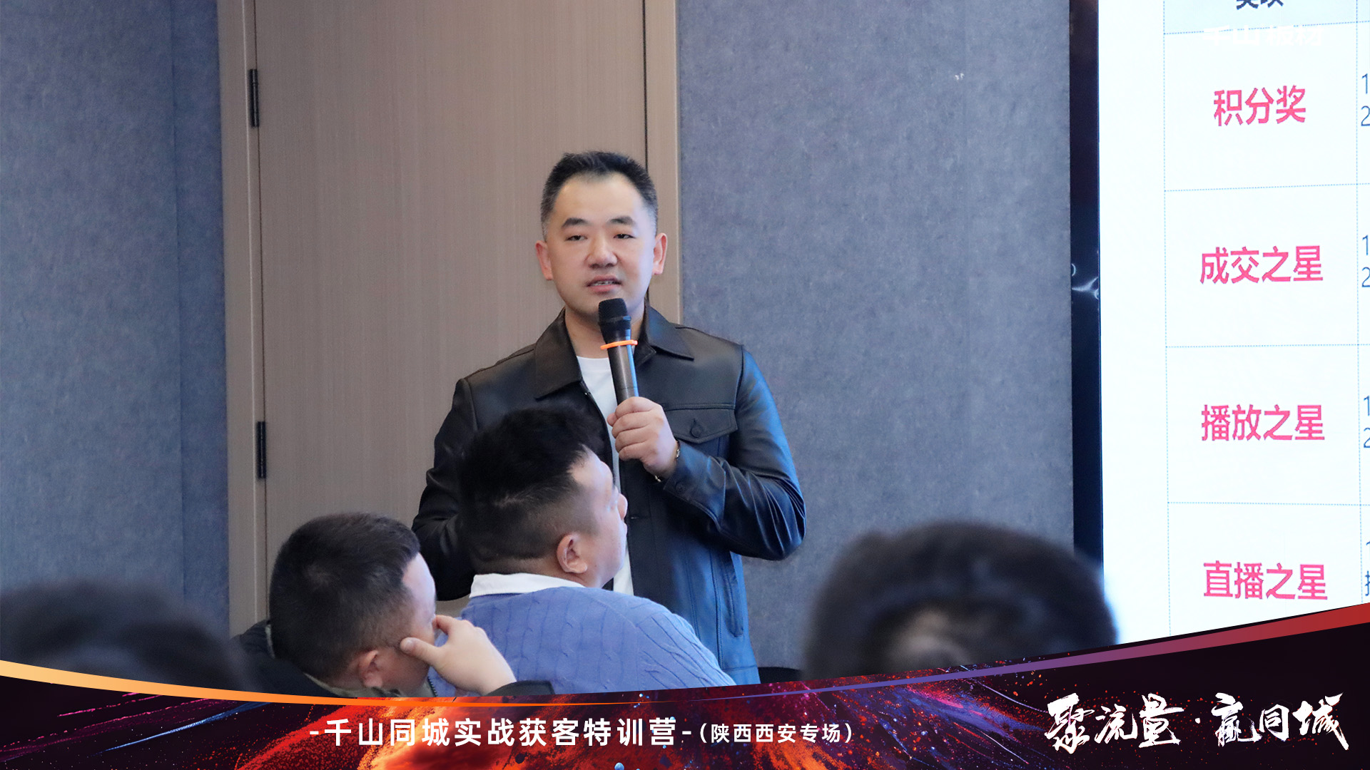 千山品牌運營中心總監于坤對千山的新媒體營銷策略進行了全面的講解。于總表示,同城獲客是線上營銷的利器,而實現同城獲客高效轉化的重點在于短視頻的優內容、高密度、強跟進,希望大家大膽實踐、持之以恒,搶占同城流量,助力業績增長。