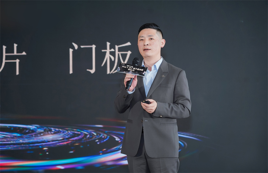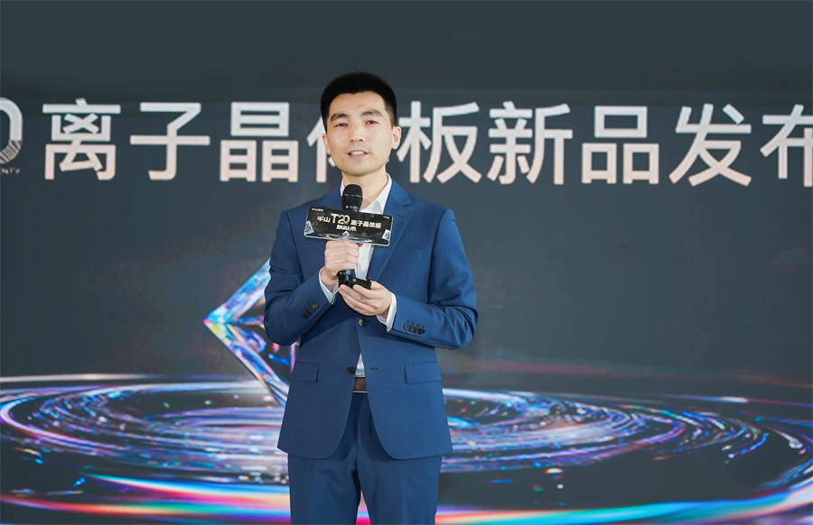 千山集團副總經理王松重磅揭曉千山板材年度新品——T20離子晶體板!憑借20mm厚度設計×離子晶體科技,其展現卓越的高強承重能力、高能抗變形特性以及超強耐磨性能,突破傳統板材的性能局限,重新定義高品質板材標準。