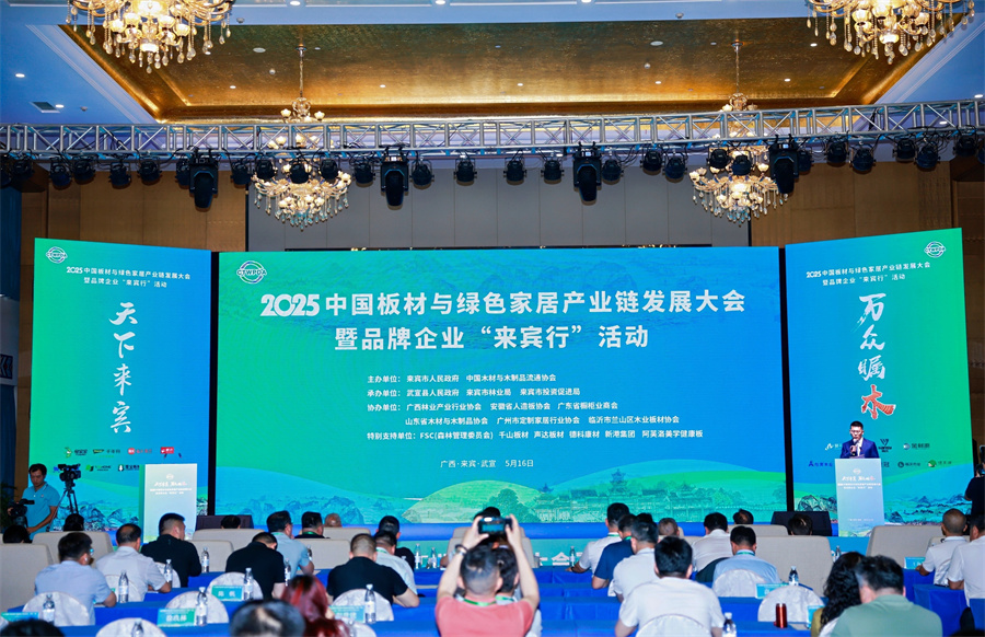 5月15—17日,“天下來賓·萬眾矚木”2025中國板材與綠色家居產業鏈發展大會暨品牌企業 “來賓行”活動在廣西省來賓市武宣縣隆重舉行。本次大會由來賓市政府和中國木材與木制品流通協會共同主辦,大會同步舉行第四屆人造板流通品牌研討會。