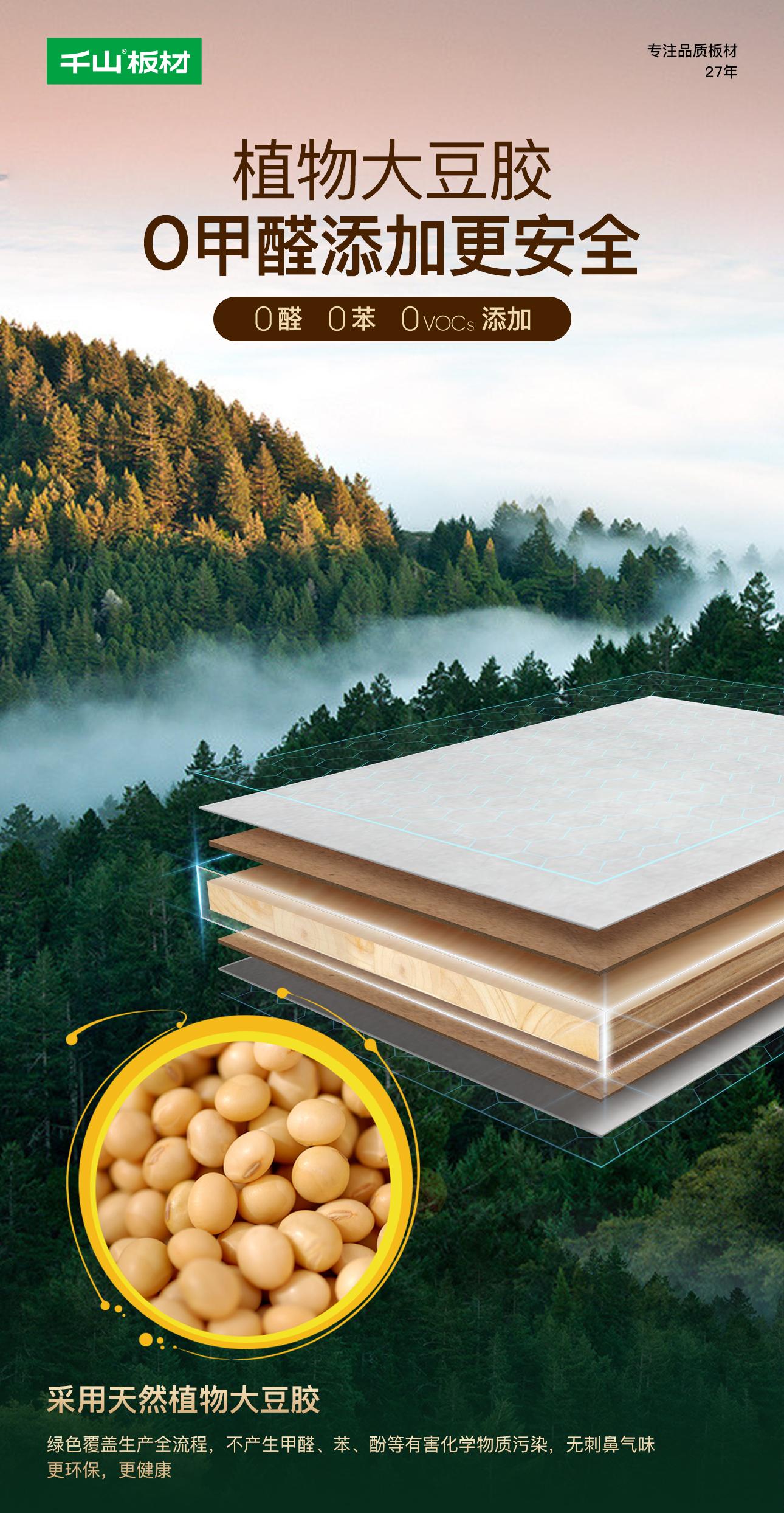 2019年千山憑借(jie)敏(min)銳的市場洞察力,成功推出(chu)了大豆膠板(ban)(ban)材這一(yi)創新(xin)產品(pin),并率先上(shang)市,迅速(su)在市場上(shang)引(yin)起了廣泛關注與(yu)熱烈反響,引(yin)領行業進入植物(wu)豆膠新(xin)時代(dai)。 自2019年成功上(shang)市以(yi)來,千山大豆膠板(ban)(ban)材以(yi)無醛(quan)大豆膠黏劑技(ji)術(shu)、優質實木板(ban)(ban)芯(xin)以(yi)及無醛(quan)添加制造工藝,在無醛(quan)人造板(ban)(ban)市場脫(tuo)穎(ying)而出(chu)。憑借(jie)卓越的產品(pin)品(pin)質與(yu)環保性能,