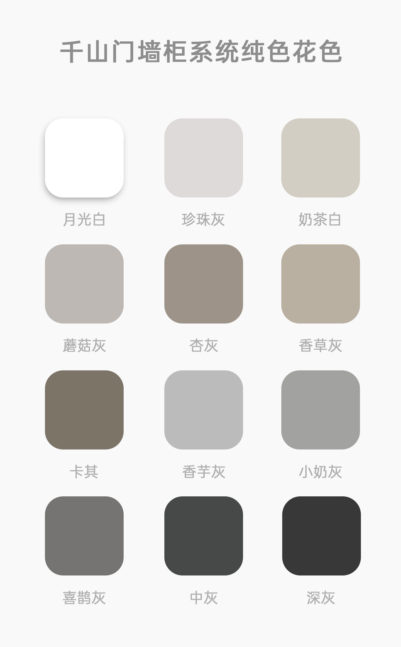 潮流色彩的呈現是門墻柜一體設計的重點,千山門墻柜系統23款極致色彩實現審美升級,滿足極簡、現代、中式等多樣風格的家裝需求。