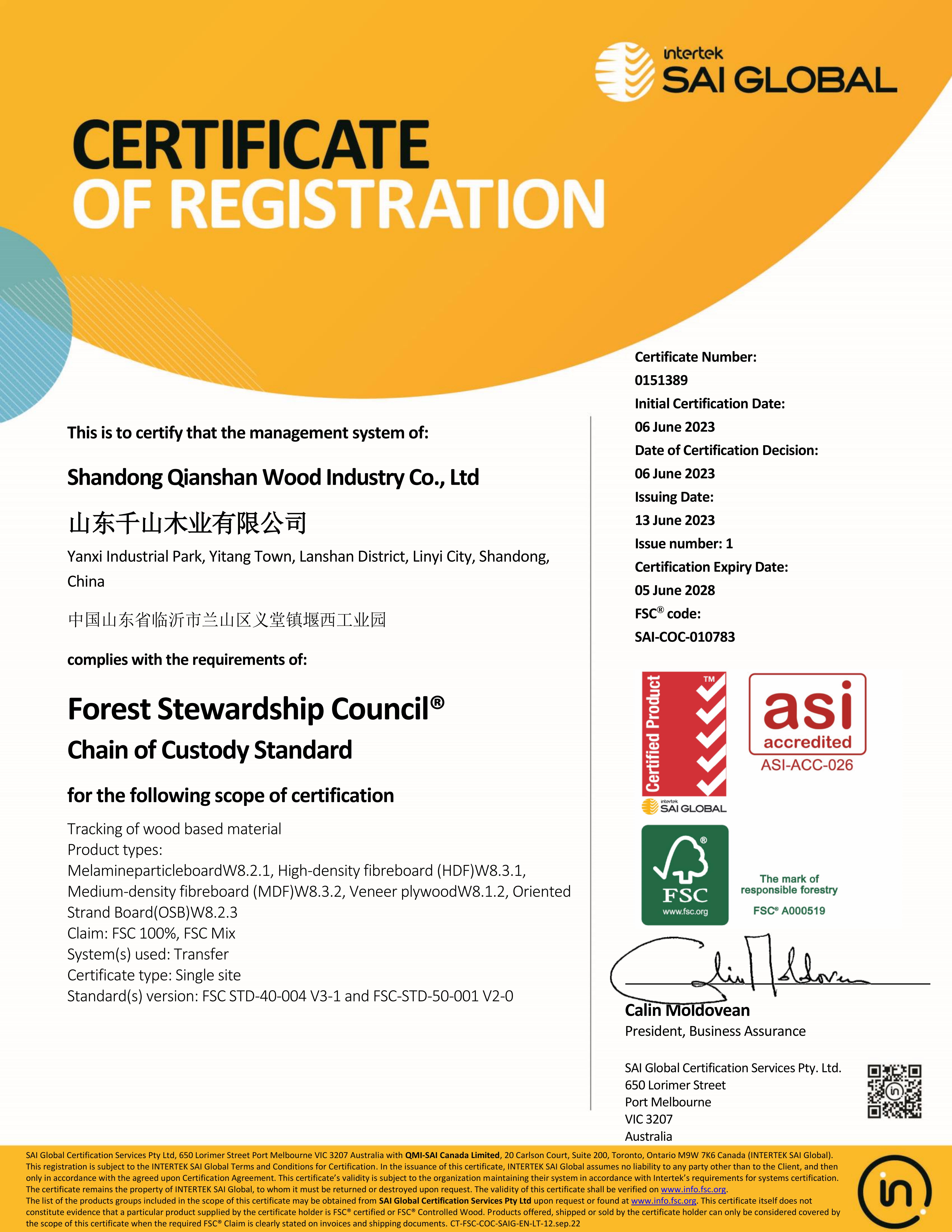 憑借對社會可持續發展的踐行和對環保理念的堅持,2023年千山再次順利通過“全球最嚴苛的”森林認證——FSC森林認證。該認證標志著一件產品來自經過環境、社會和經濟可持續管理的森林。可以說,消費者選擇具有FSC認證的產品,就是選擇了健康的森林和有保障的產品。